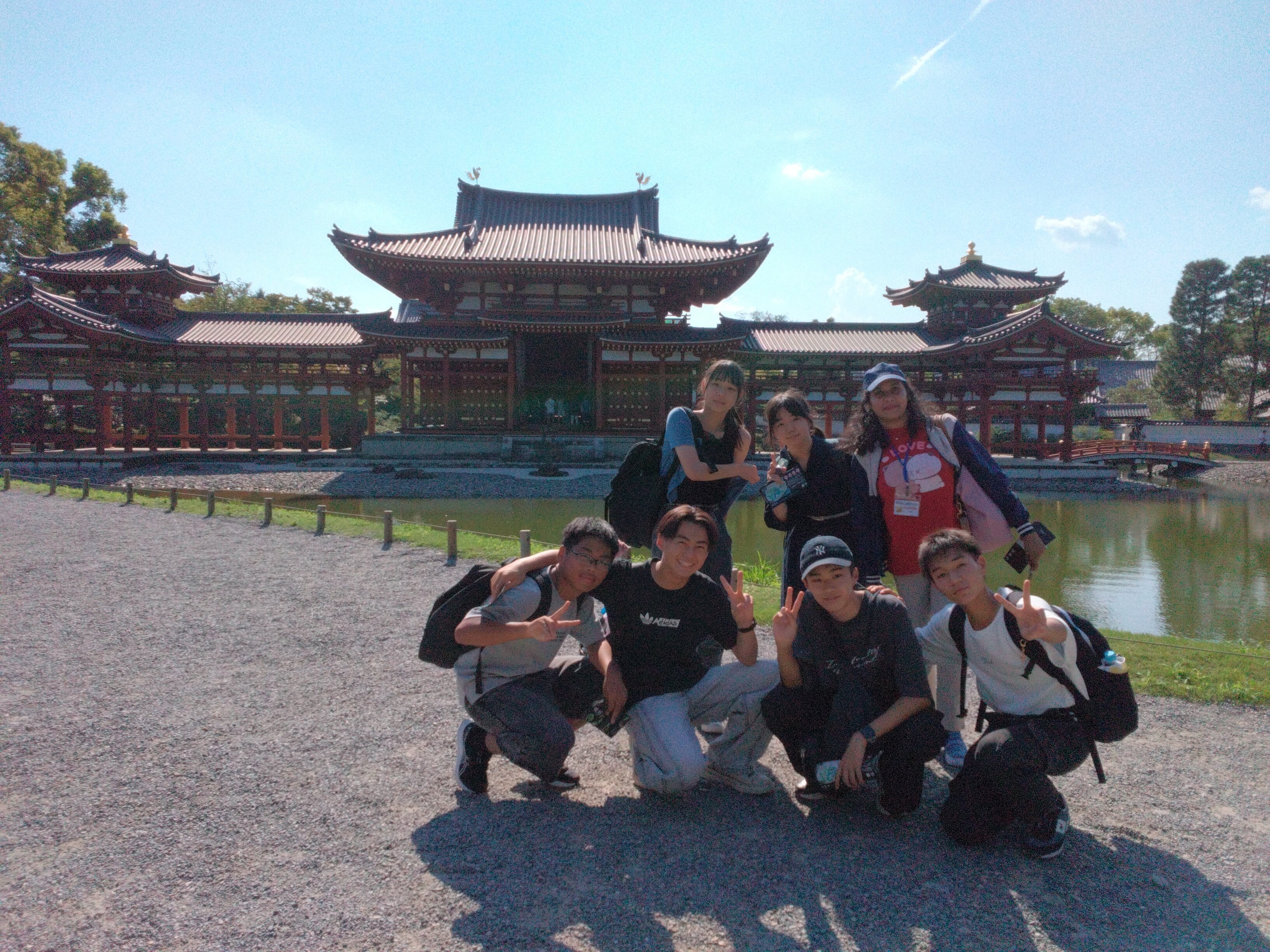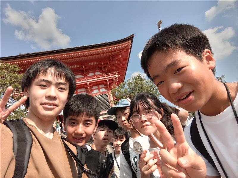 澄み渡る夏空のもと、金閣寺や清水寺、平等院鳳凰堂など、古都の歴史を肌で感じたり、扇子や藍染めなど、その場でしか経験し得ない体験学習を行ったりしました。