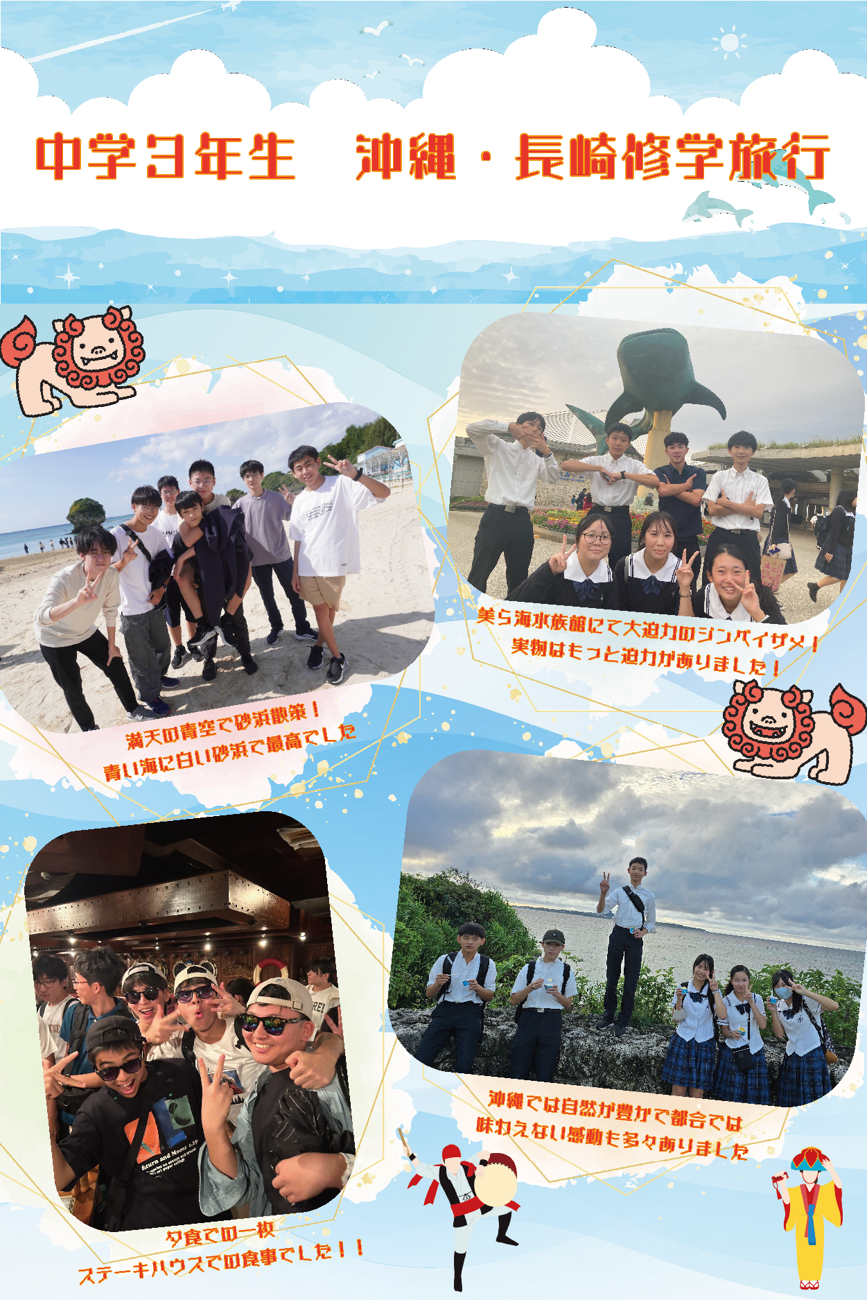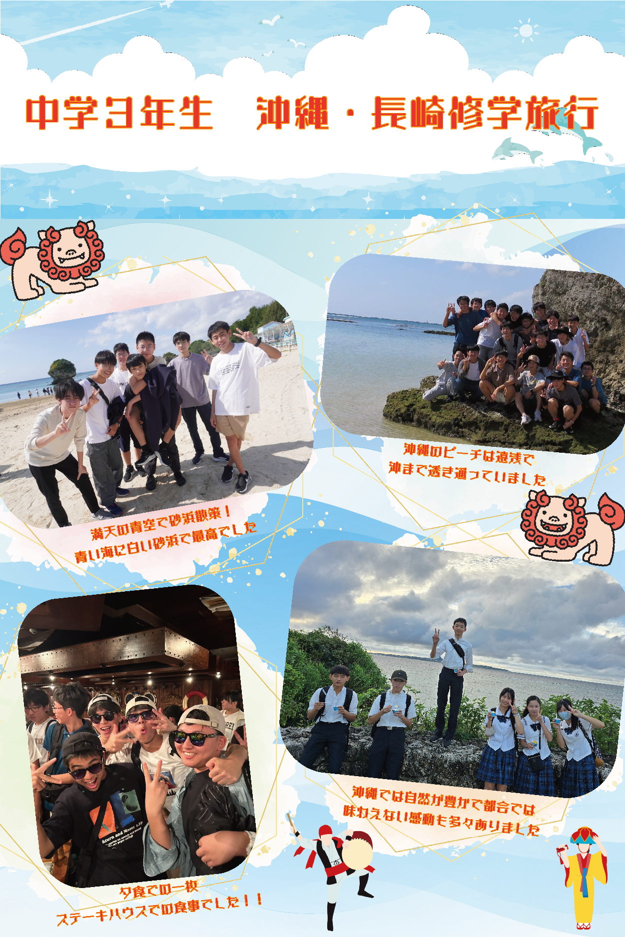 中学3年生は5泊6日の行程で、沖縄・長崎修学旅行を実施しました。
