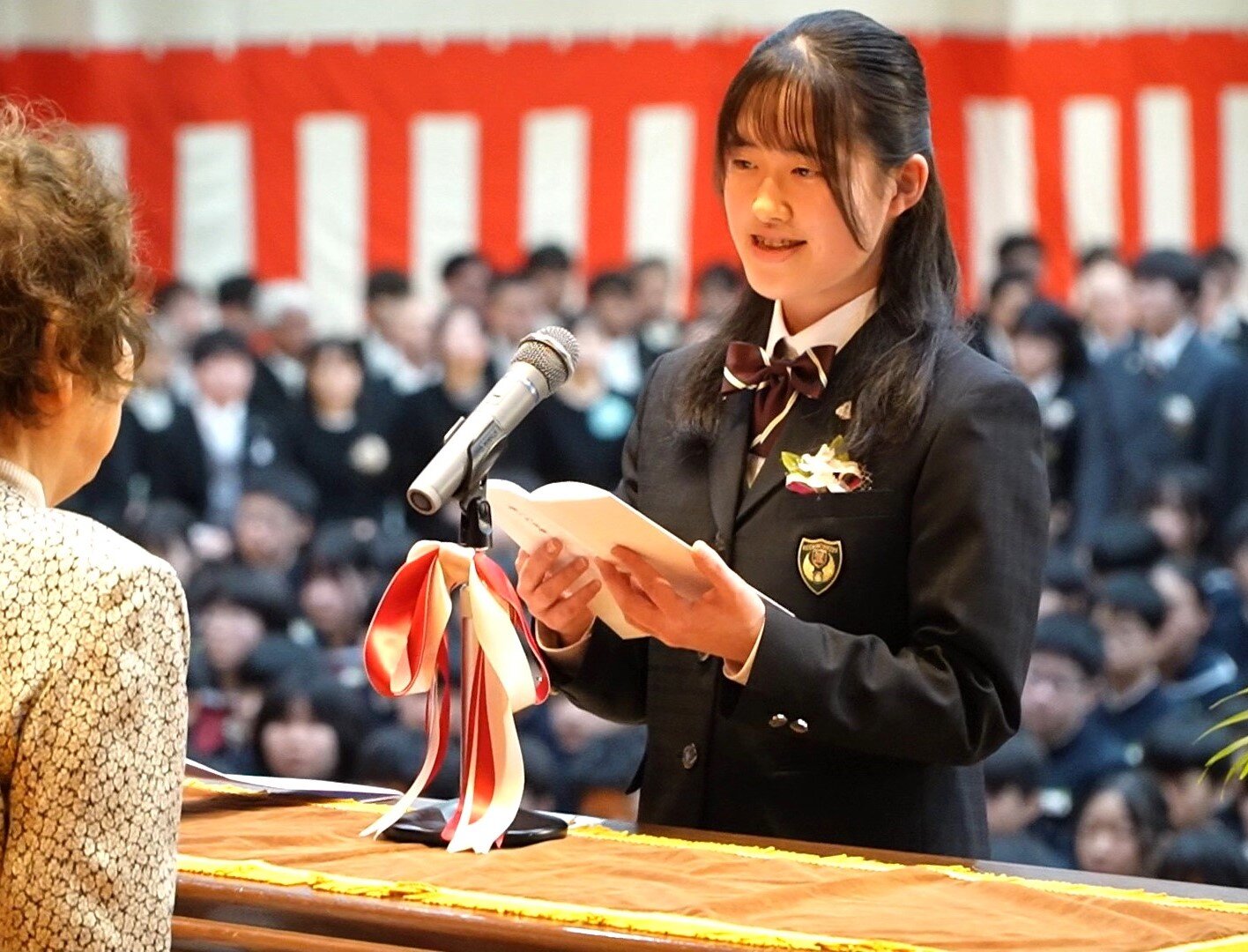 田中校長からは、「これから皆さんが歩む学校生活は、決して平坦な道のりではありません。時には壁にぶつかり、自信をなくすこともあるでしょう。しかしその挫折や失敗こそが、自分自身を見つめ、成長するための大切な宝となっていきます。学校生活の中で、あらゆる困難に立ち向かう力を身に着けてほしいです。」という言葉が新入生に向けて送られました。