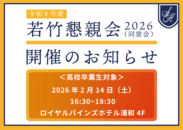 【高校卒業生対象】2月14日(土)同窓会「若竹懇親会2026」を開催します。