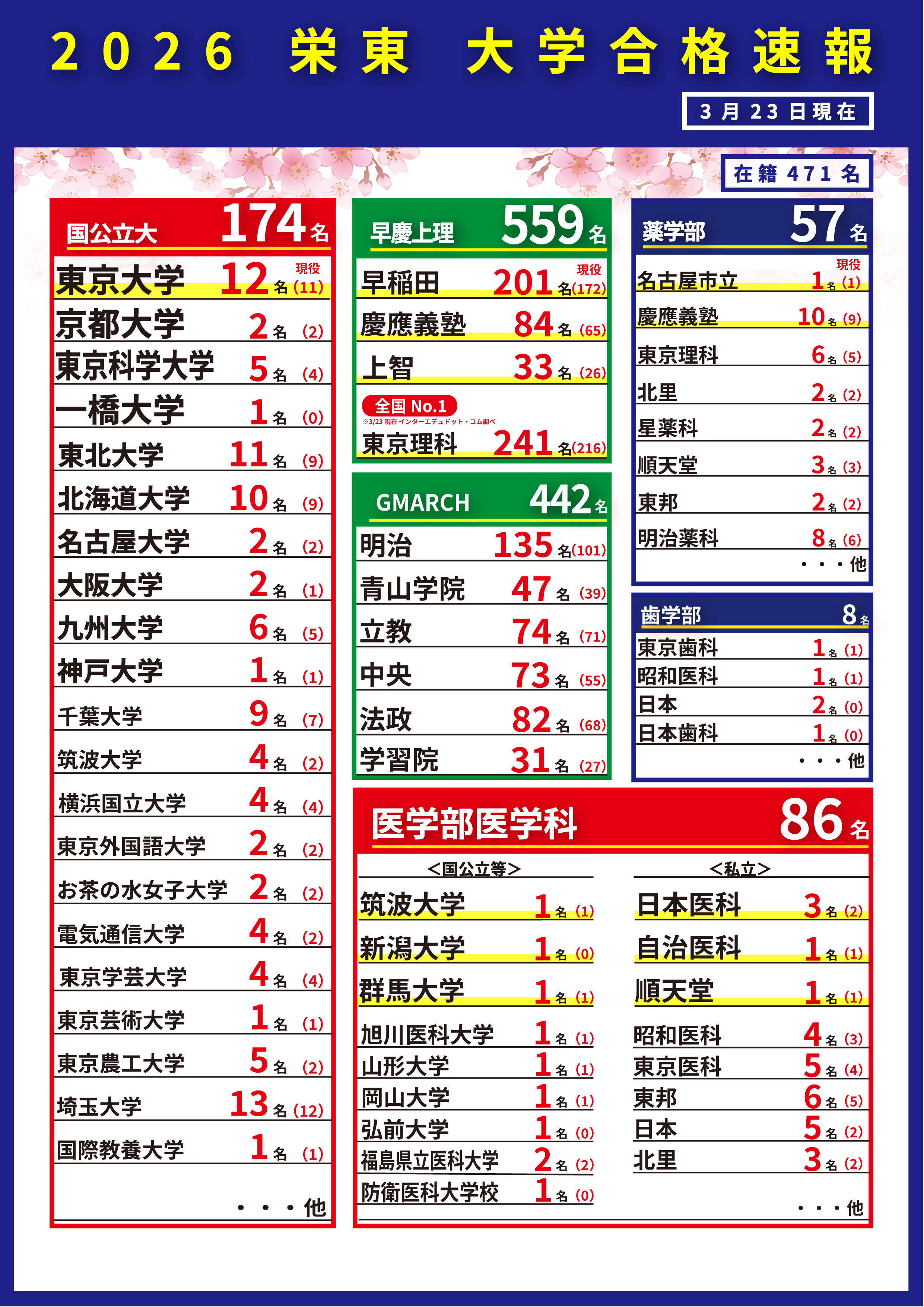 大学合格速報 2026 (※3/23現在)