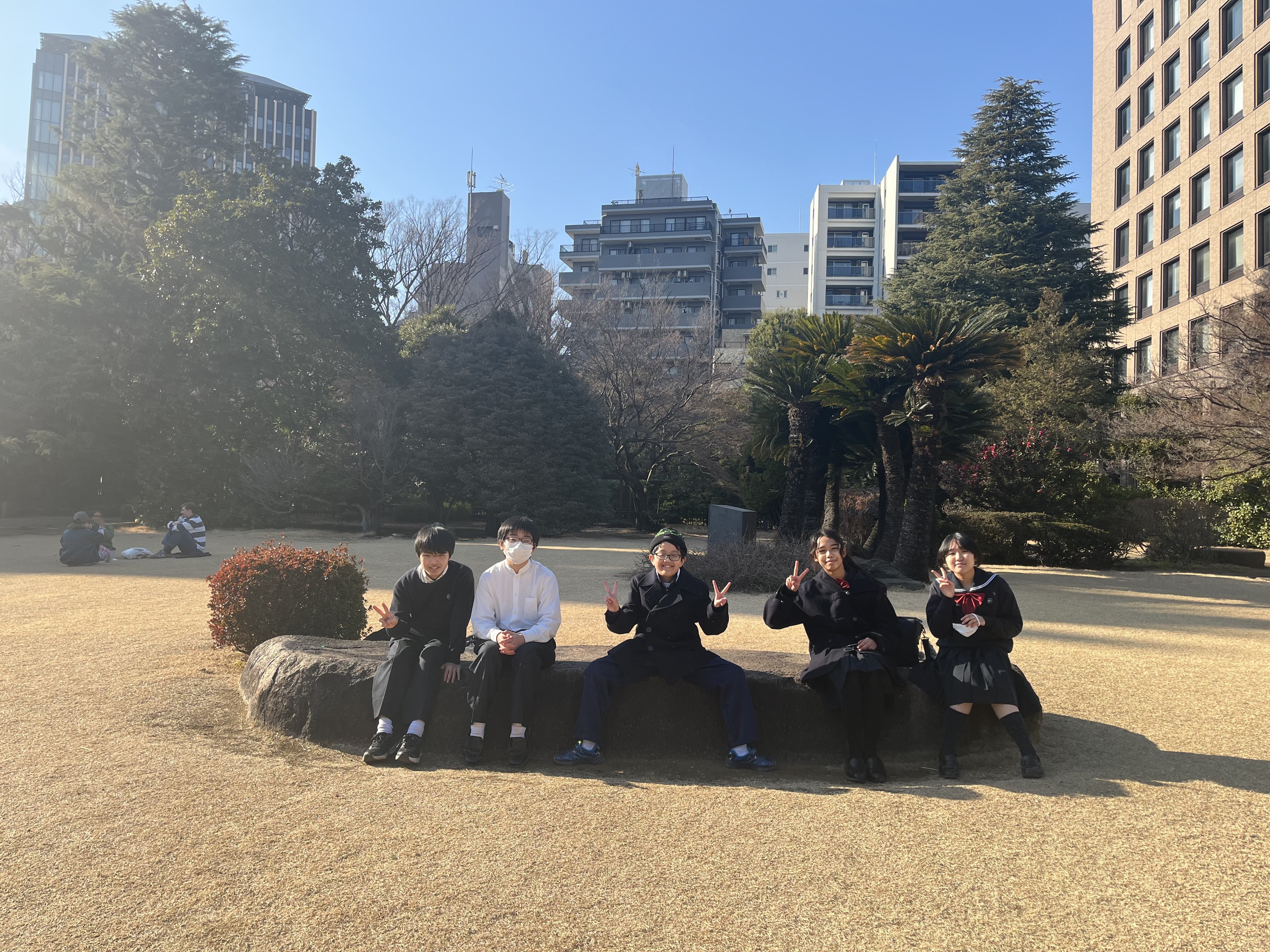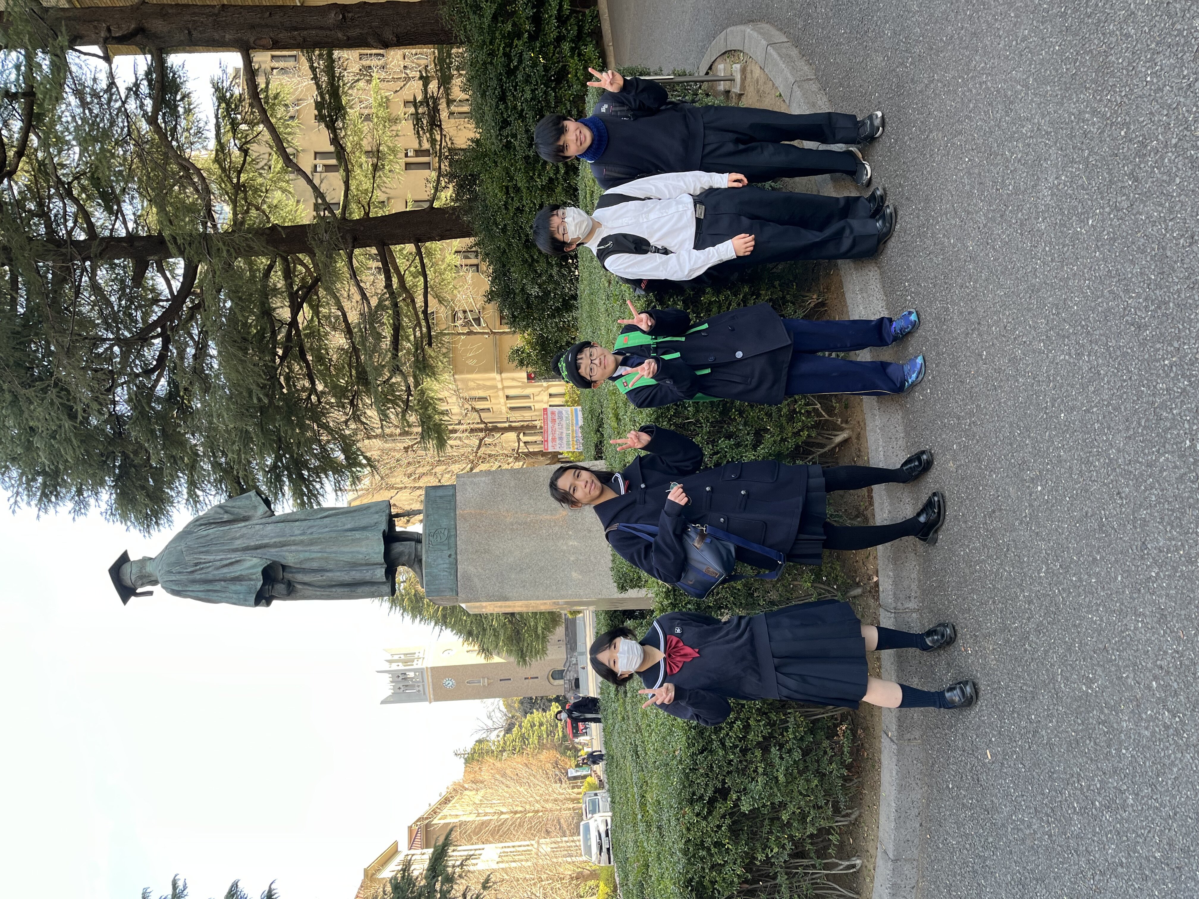 園芸同好会の部活であるので、最後は大隈庭園に集合し昼食をとりました。日本を代表する庭園であり、早稲田大学内にある自然豊かな空間でした。 中学生としての自覚や責任をもって、校外での活動もできるように成長していってほしいです。